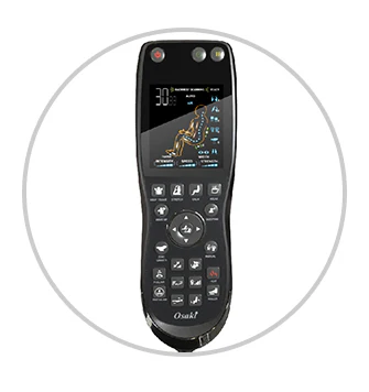 The Osaki Vito remote has an easy-viewing screen that displays the functions the chair has activated. On the remote it allows you to select the massage type. intensity. speed. and location. You can also operate the functions independently in Manual mode.